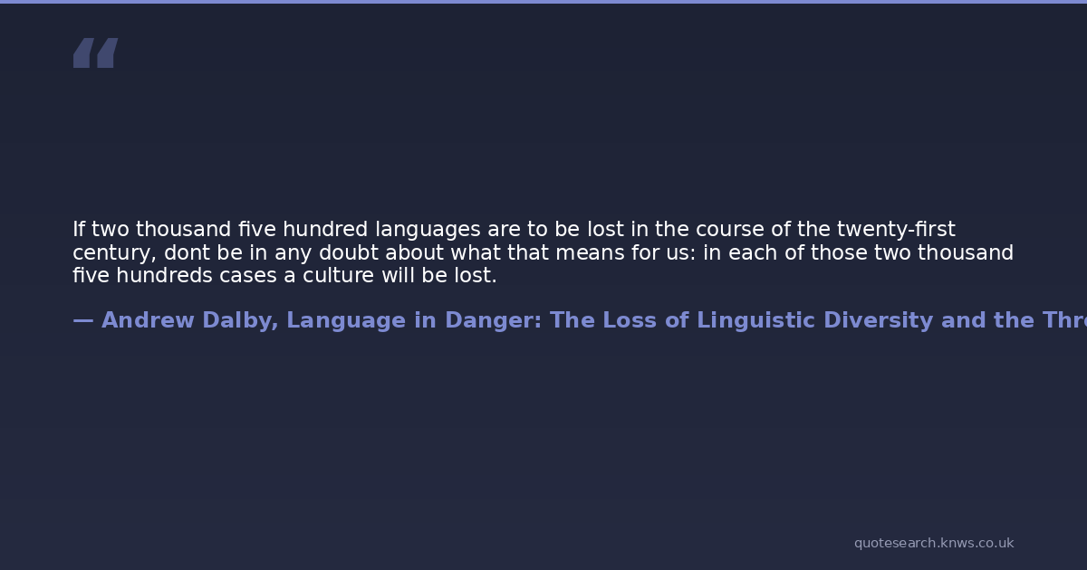If two thousand five hundred languages are to be lost in the course of the twenty-first century, dont be in any doubt about what that means for us: in each of those two thousand five hundreds cases a culture will be lost.