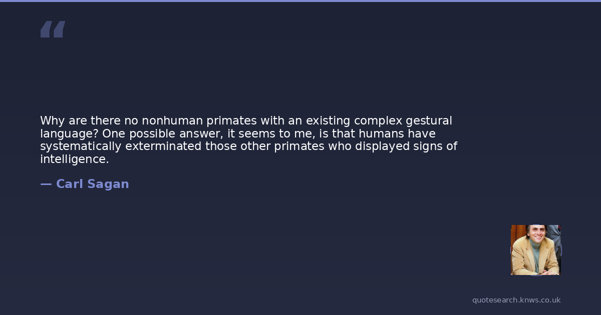 Why are there no nonhuman primates with an existing complex gestural language? One possible answer, it seems to me, is that humans have systematically exterminated those other primates who displayed signs of intelligence.