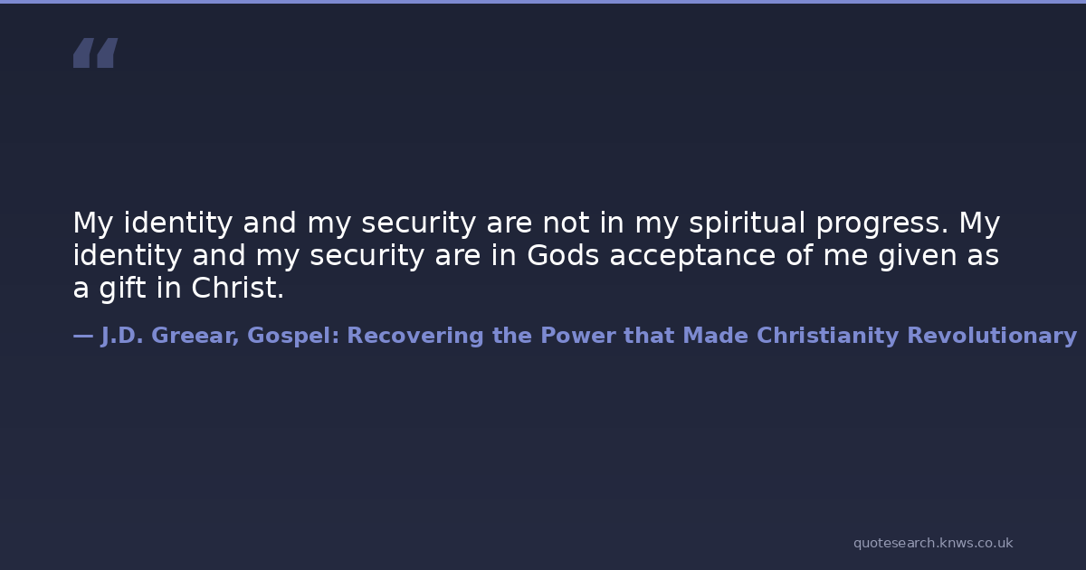 My identity and my security are not in my spiritual progress. My identity and my security are in Gods acceptance of me given as a gift in Christ.