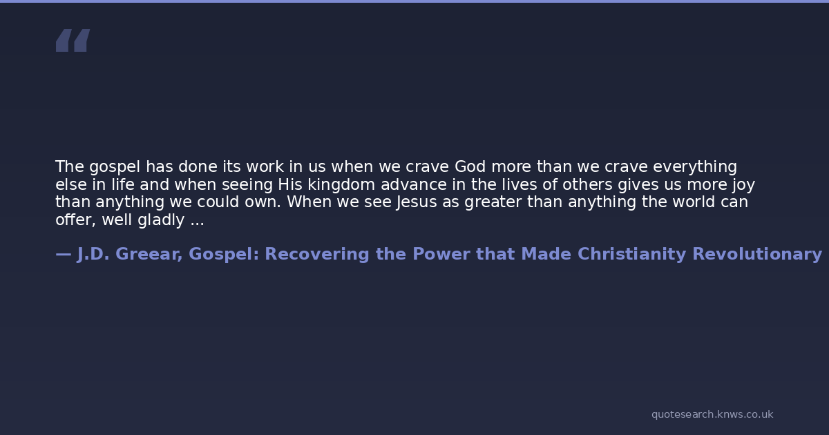 The gospel has done its work in us when we crave God more than we crave everything else in life and when seeing His kingdom advance in the lives of others gives us more joy than anything we could own. When we see Jesus as greater than anything the world can offer, well gladly let everything else go to possess Him.