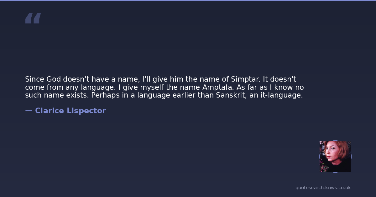Since God doesn't have a name, I'll give him the name of Simptar. It doesn't come from any language. I give myself the name Amptala. As far as I know no such name exists. Perhaps in a language earlier than Sanskrit, an it-language.