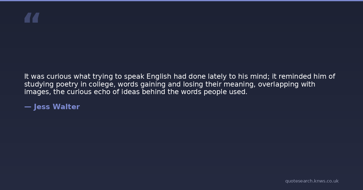 It was curious what trying to speak English had done lately to his mind; it reminded him of studying poetry in college, words gaining and losing their meaning, overlapping with images, the curious echo of ideas behind the words people used.