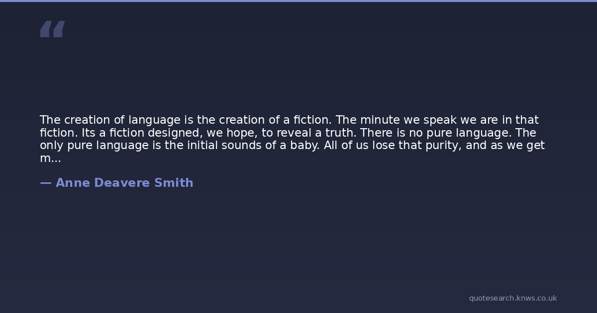 The creation of language is the creation of a fiction. The minute we speak we are in that fiction. Its a fiction designed, we hope, to reveal a truth. There is no pure language. The only pure language is the initial sounds of a baby. All of us lose that purity, and as we get more of the world, we even lose sometimes the capacity to keep that breath moving in our language.