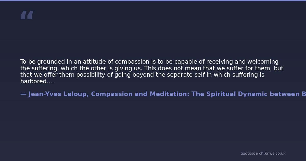 To be grounded in an attitude of compassion is to be capable of receiving and welcoming the suffering, which the other is giving us. This does not mean that we suffer for them, but that we offer them possibility of going beyond the separate self in which suffering is harbored. (59)