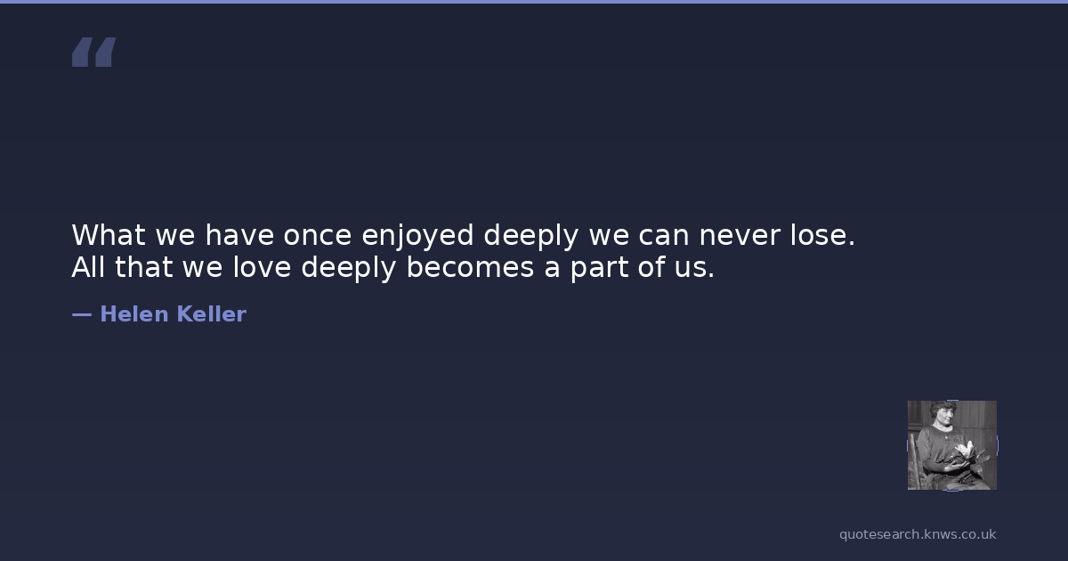 What we have once enjoyed deeply we can never lose. All that we love deeply becomes a part of us.