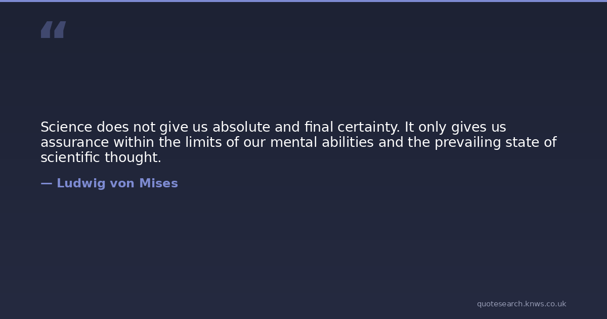 Science does not give us absolute and final certainty. It only gives us assurance within the limits of our mental abilities and the prevailing state of scientific thought.