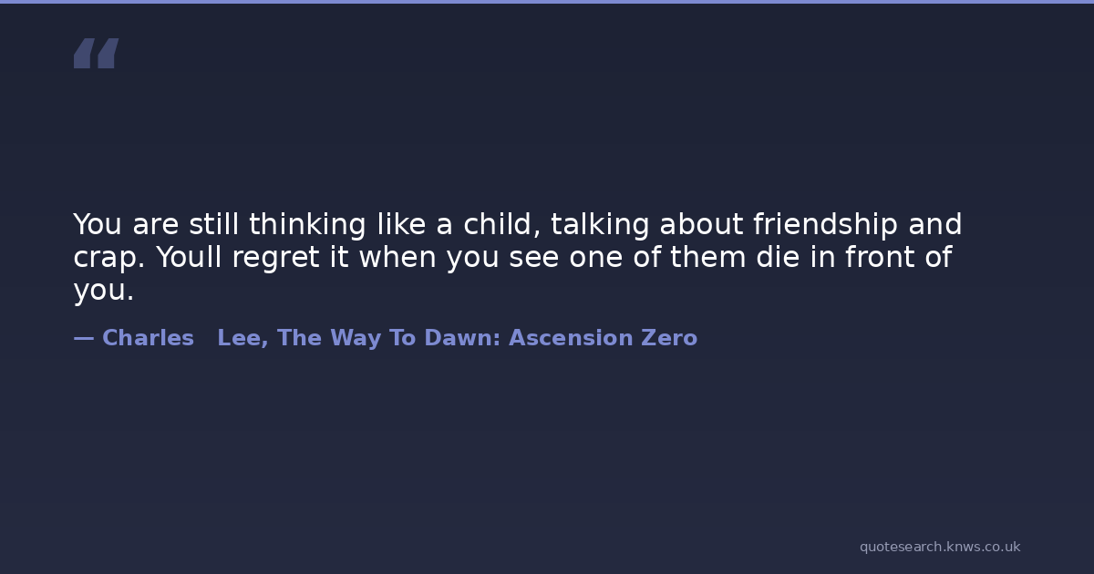 You are still thinking like a child, talking about friendship and crap. Youll regret it when you see one of them die in front of you.