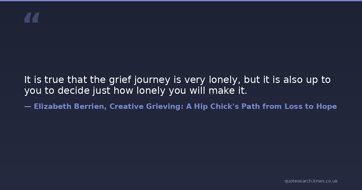 It is true that the grief journey is very lonely, but it is also up to you to decide just how lonely you will make it.