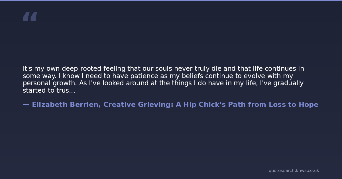 It's my own deep-rooted feeling that our souls never truly die and that life continues in some way. I know I need to have patience as my beliefs continue to evolve with my personal growth. As I've looked around at the things I do have in my life, I've gradually started to trust in life again, little by little. I think, "How could all of these other amazing things come into my life if there was not something larger than me?