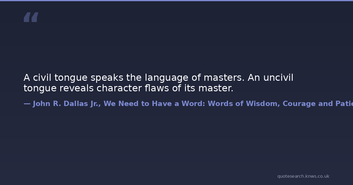 A civil tongue speaks the language of masters. An uncivil tongue reveals character flaws of its master.
