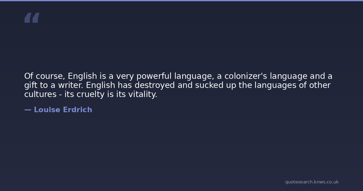 Of course, English is a very powerful language, a colonizer's language and a gift to a writer. English has destroyed and sucked up the languages of other cultures - its cruelty is its vitality.