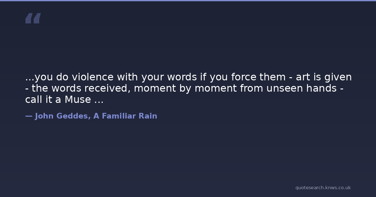 ...you do violence with your words if you force them - art is given - the words received, moment by moment from unseen hands - call it a Muse ...