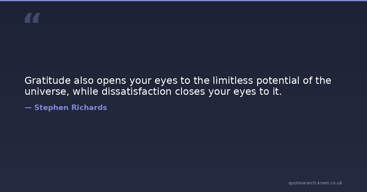 Gratitude also opens your eyes to the limitless potential of the universe, while dissatisfaction closes your eyes to it.