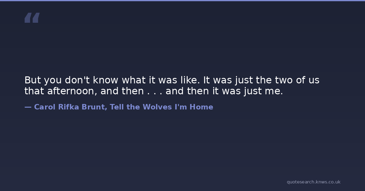 But you don't know what it was like. It was just the two of us that afternoon, and then . . . and then it was just me.
