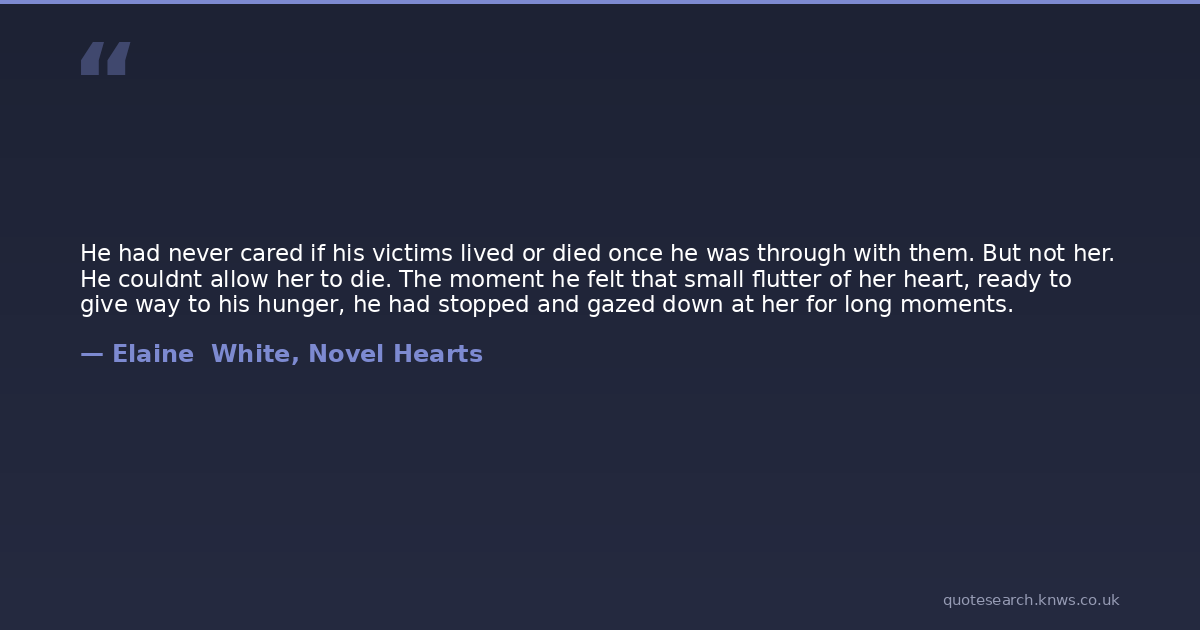 He had never cared if his victims lived or died once he was through with them. But not her. He couldnt allow her to die. The moment he felt that small flutter of her heart, ready to give way to his hunger, he had stopped and gazed down at her for long moments.