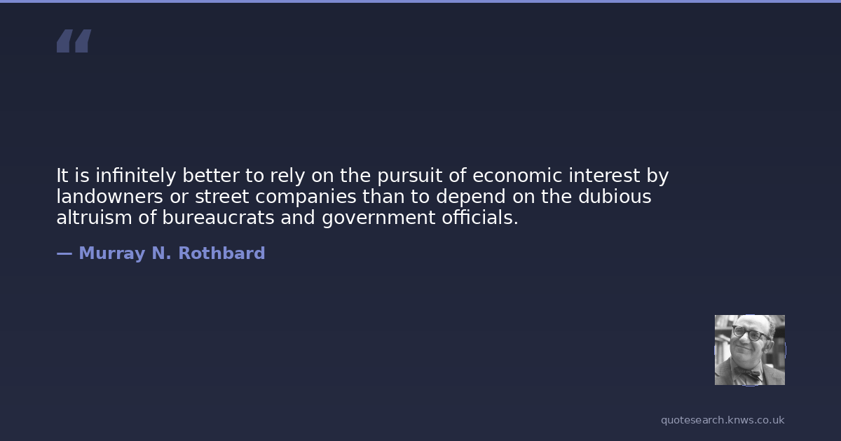 It is infinitely better to rely on the pursuit of economic interest by landowners or street companies than to depend on the dubious altruism of bureaucrats and government officials.