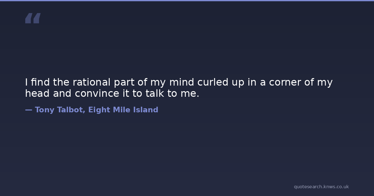 I find the rational part of my mind curled up in a corner of my head and convince it to talk to me. decisions logical-thinking mind-power Download Image Share on X Share on Facebook Copy Link
