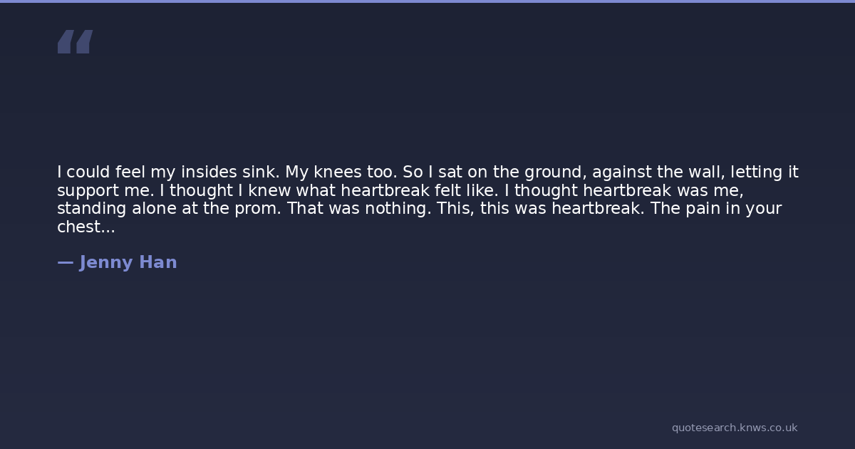 I could feel my insides sink. My knees too. So I sat on the ground, against the wall, letting it support me. I thought I knew what heartbreak felt like. I thought heartbreak was me, standing alone at the prom. That was nothing. This, this was heartbreak. The pain in your chest, the ache behind your eyes. The knowing that things will never be the same again. Its all relative, I suppose. You think you know love, you think you know real pain, but you dont. You dont know anything.