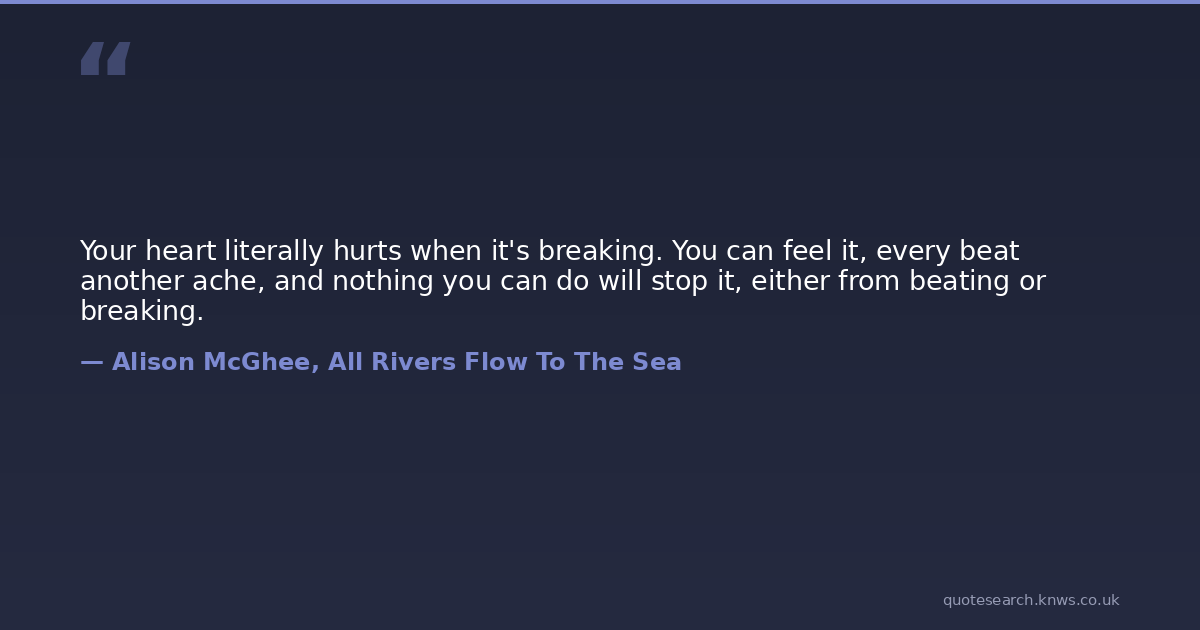 Your heart literally hurts when it's breaking. You can feel it, every beat another ache, and nothing you can do will stop it, either from beating or breaking.