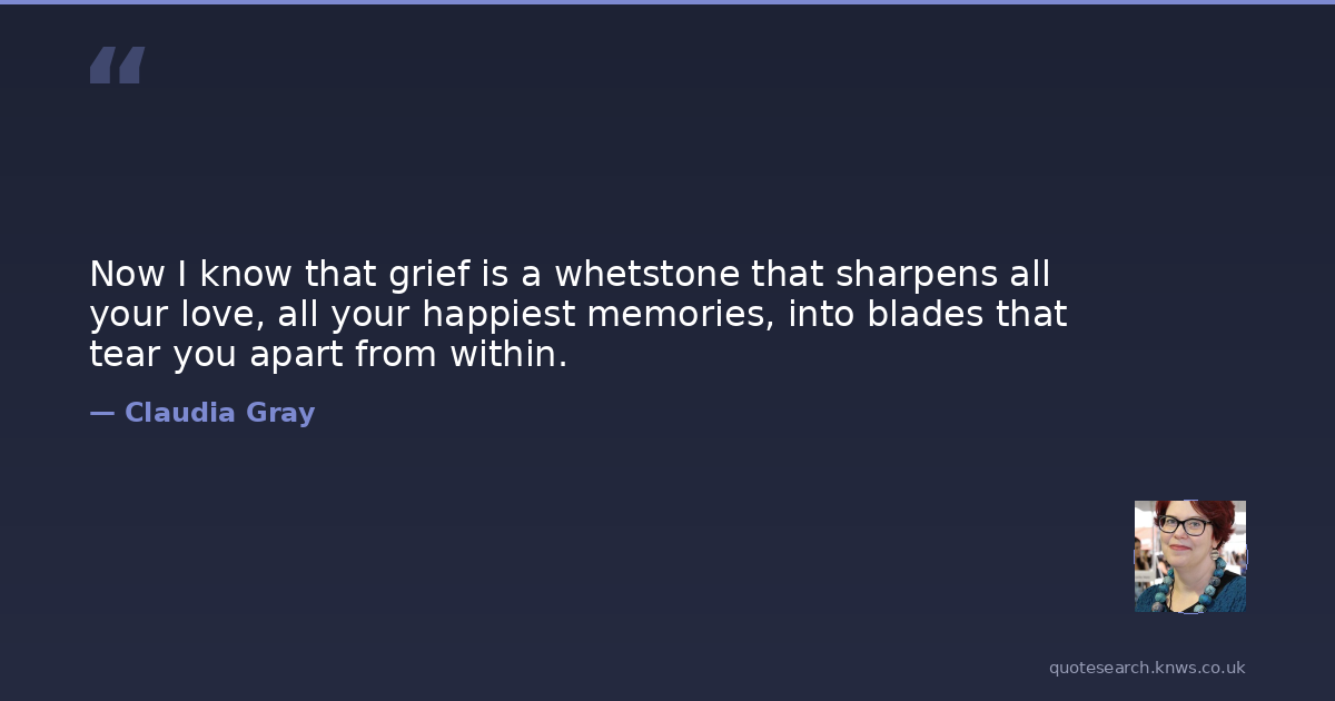 Now I know that grief is a whetstone that sharpens all your love, all your happiest memories, into blades that tear you apart from within.