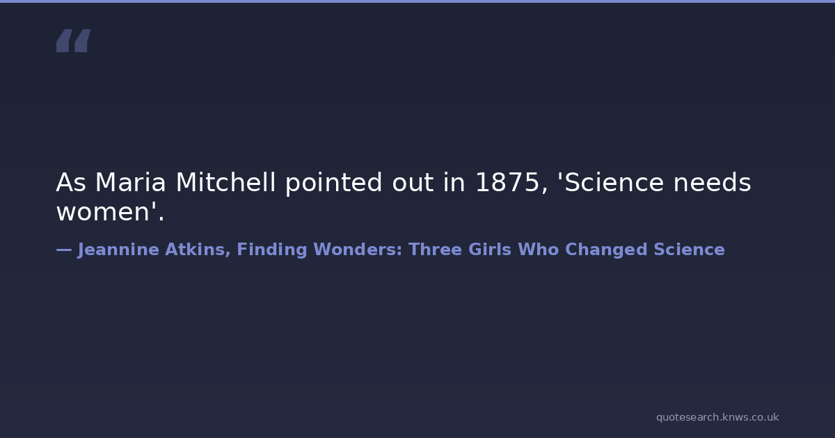 As Maria Mitchell pointed out in 1875, 'Science needs women'.