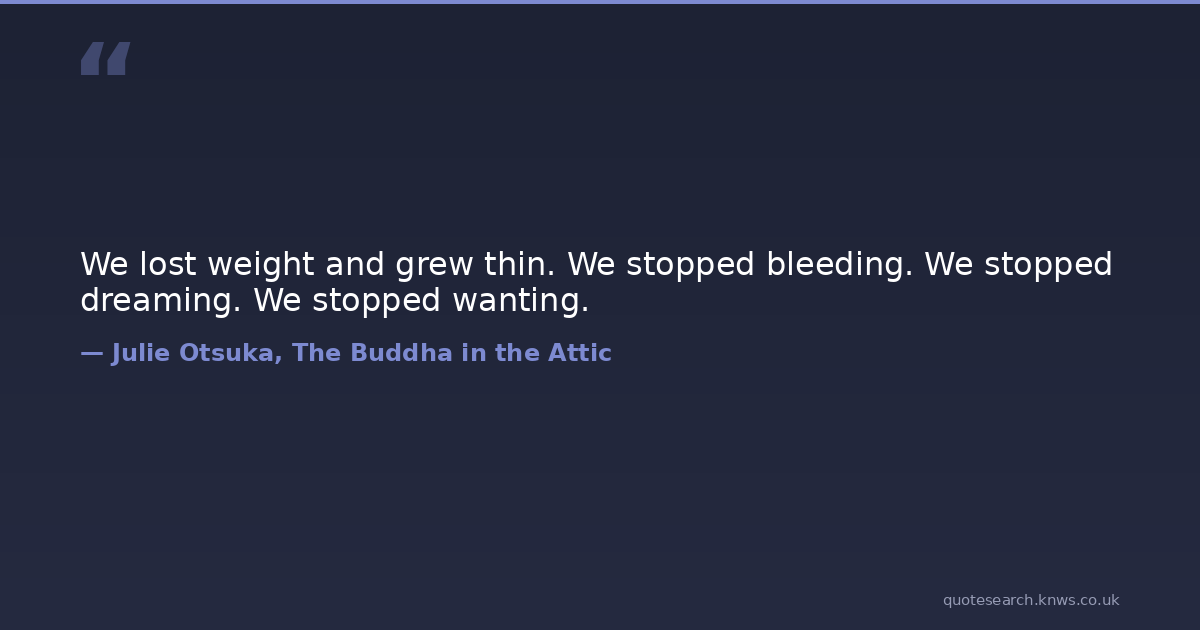 We lost weight and grew thin. We stopped bleeding. We stopped dreaming. We stopped wanting.