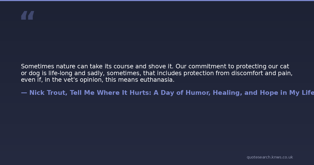 Sometimes nature can take its course and shove it. Our commitment to protecting our cat or dog is life-long and sadly, sometimes, that includes protection from discomfort and pain, even if, in the vet's opinion, this means euthanasia.