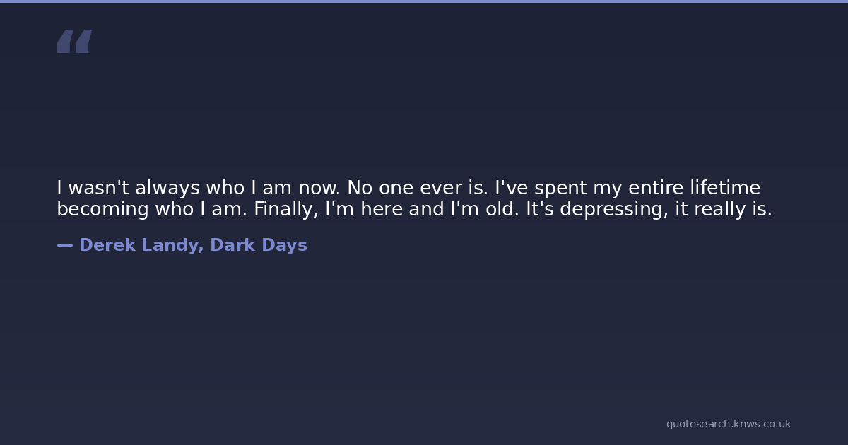 I wasn't always who I am now. No one ever is. I've spent my entire lifetime becoming who I am. Finally, I'm here and I'm old. It's depressing, it really is.