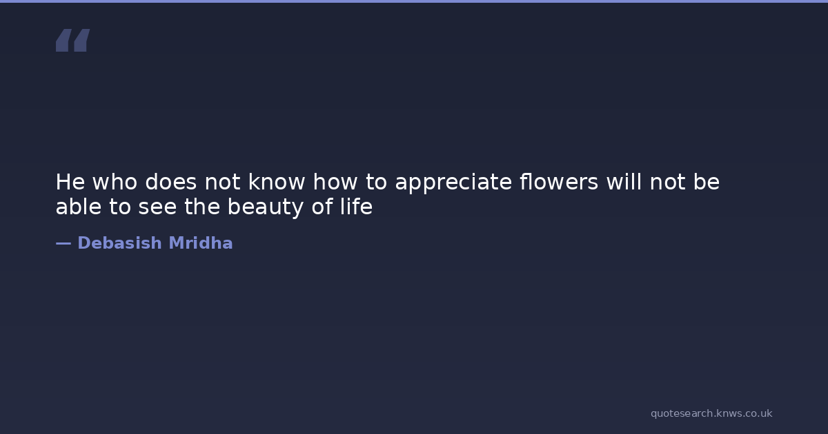 He who does not know how to appreciate flowers will not be able to see the beauty of life