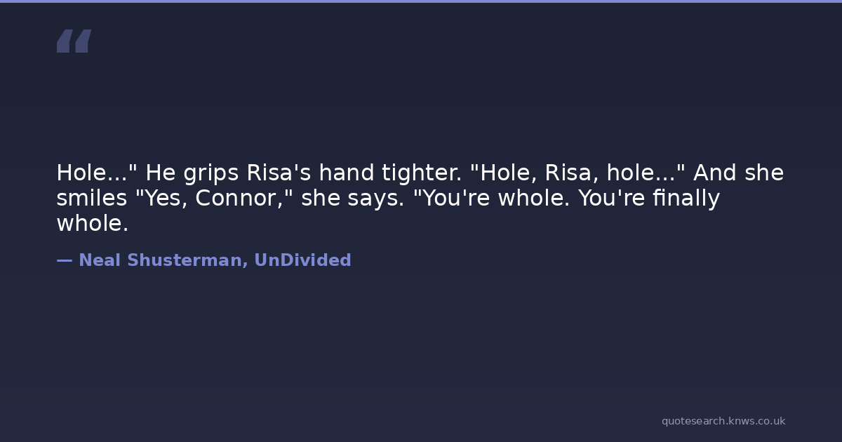 Hole..." He grips Risa's hand tighter. "Hole, Risa, hole..." And she smiles "Yes, Connor," she says. "You're whole. You're finally whole.