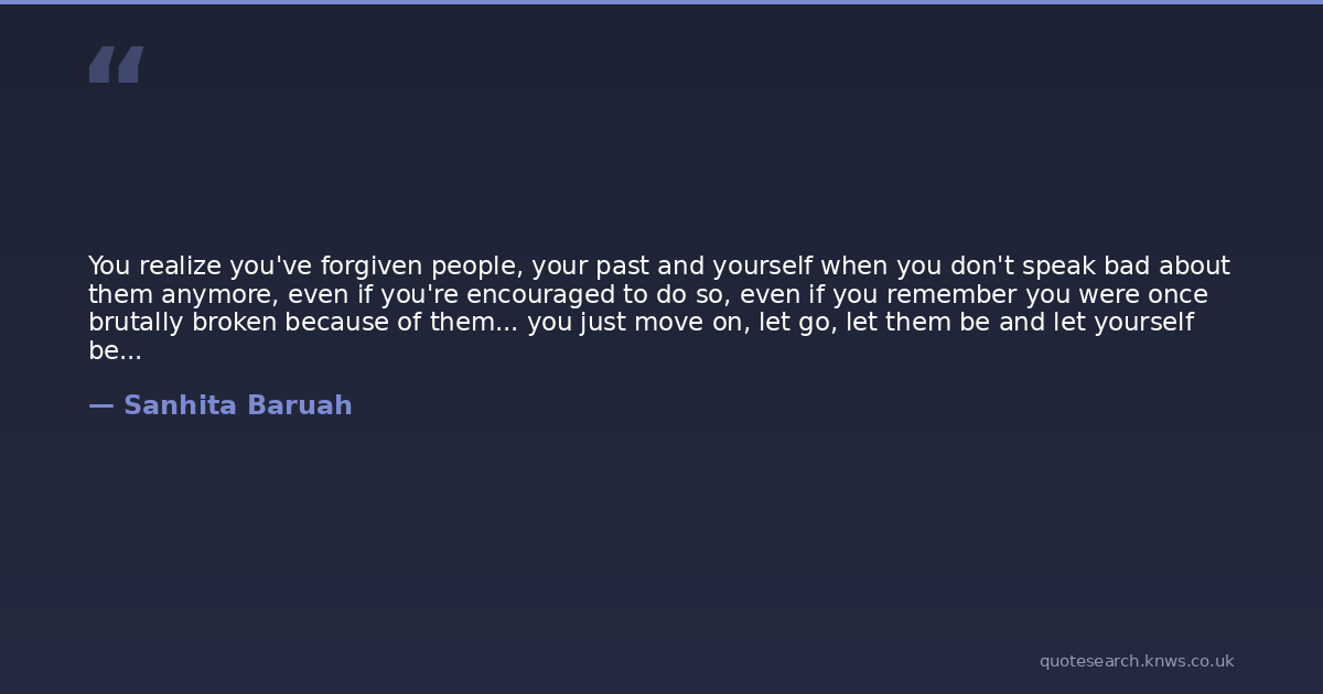 You realize you've forgiven people, your past and yourself when you don't speak bad about them anymore, even if you're encouraged to do so, even if you remember you were once brutally broken because of them... you just move on, let go, let them be and let yourself be...