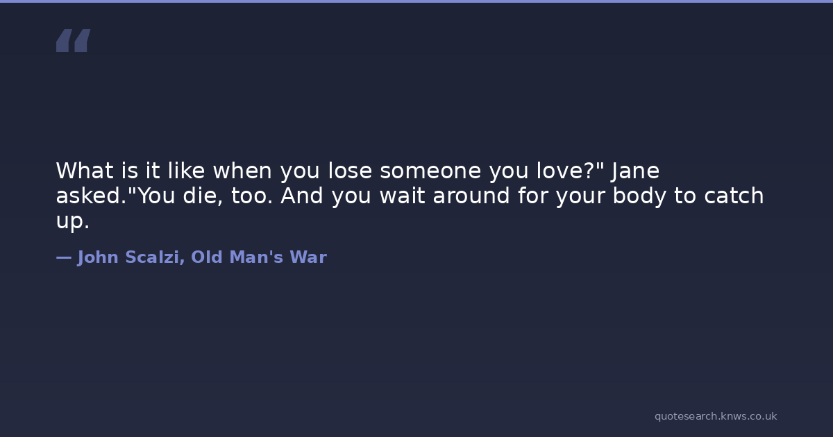 What is it like when you lose someone you love?" Jane asked."You die, too. And you wait around for your body to catch up.
