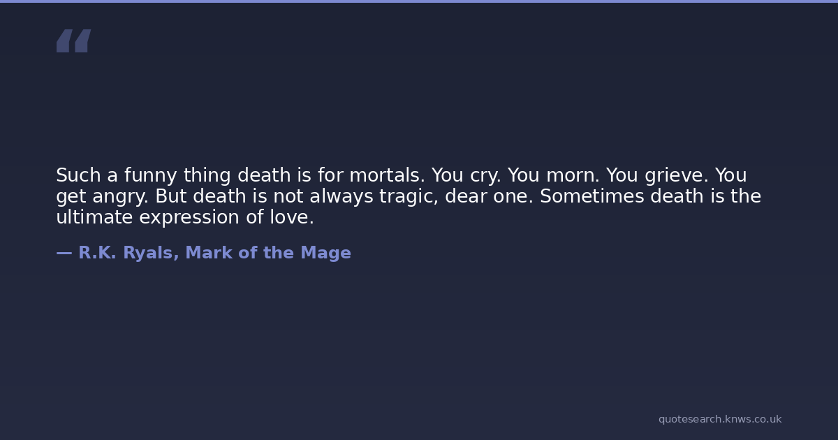 Such a funny thing death is for mortals. You cry. You morn. You grieve. You get angry. But death is not always tragic, dear one. Sometimes death is the ultimate expression of love.