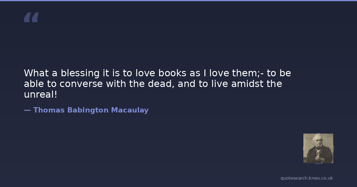 What a blessing it is to love books as I love them;- to be able to converse with the dead, and to live amidst the unreal!