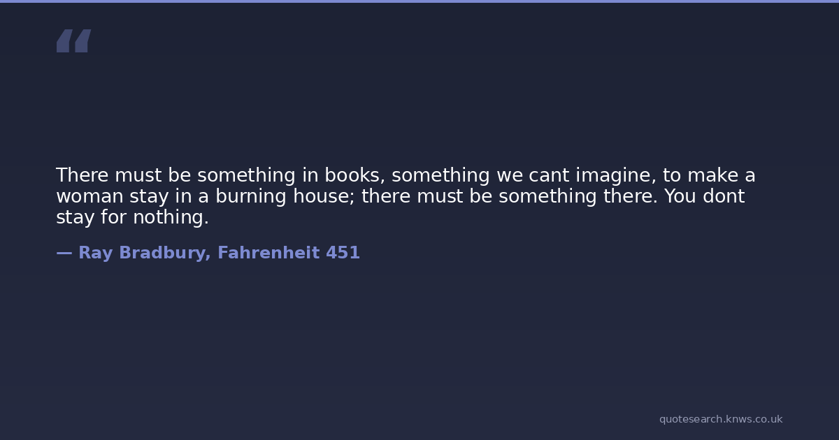 There must be something in books, something we cant imagine, to make a woman stay in a burning house; there must be something there. You dont stay for nothing.