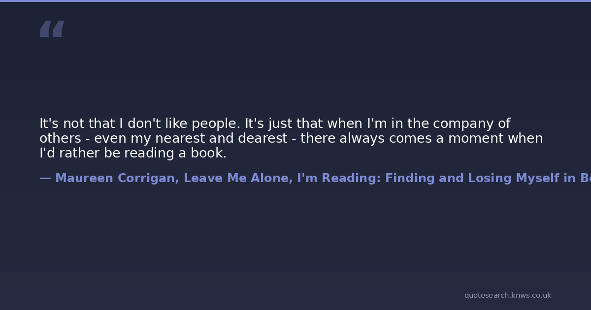 It's not that I don't like people. It's just that when I'm in the company of others - even my nearest and dearest - there always comes a moment when I'd rather be reading a book.