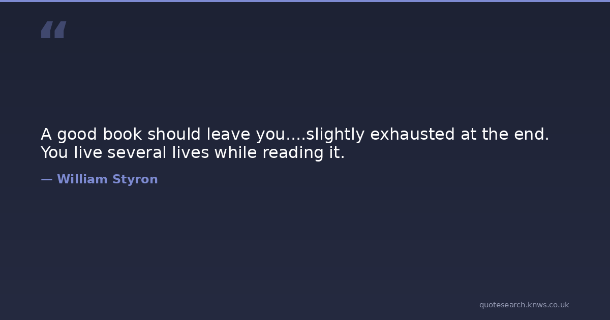 A good book should leave you....slightly exhausted at the end. You live several lives while reading it.