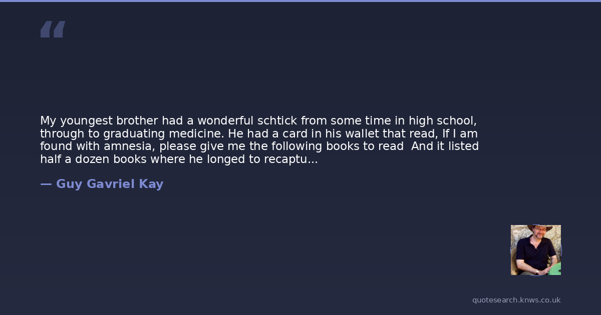 My youngest brother had a wonderful schtick from some time in high school, through to graduating medicine. He had a card in his wallet that read, If I am found with amnesia, please give me the following books to read And it listed half a dozen books where he longed to recapture that first glorious sense of needing to find out what happens next the feeling that keeps you up half the night. The feeling that comes before the plots been learned.