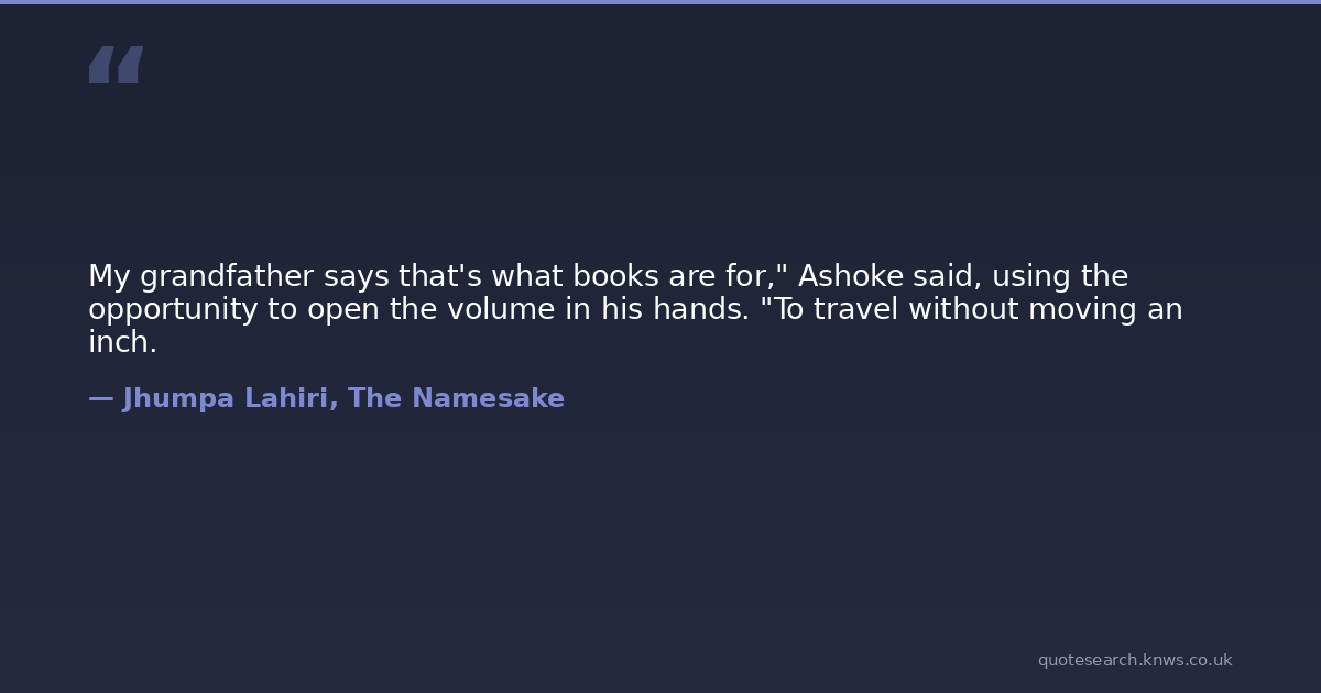My grandfather says that's what books are for," Ashoke said, using the opportunity to open the volume in his hands. "To travel without moving an inch.