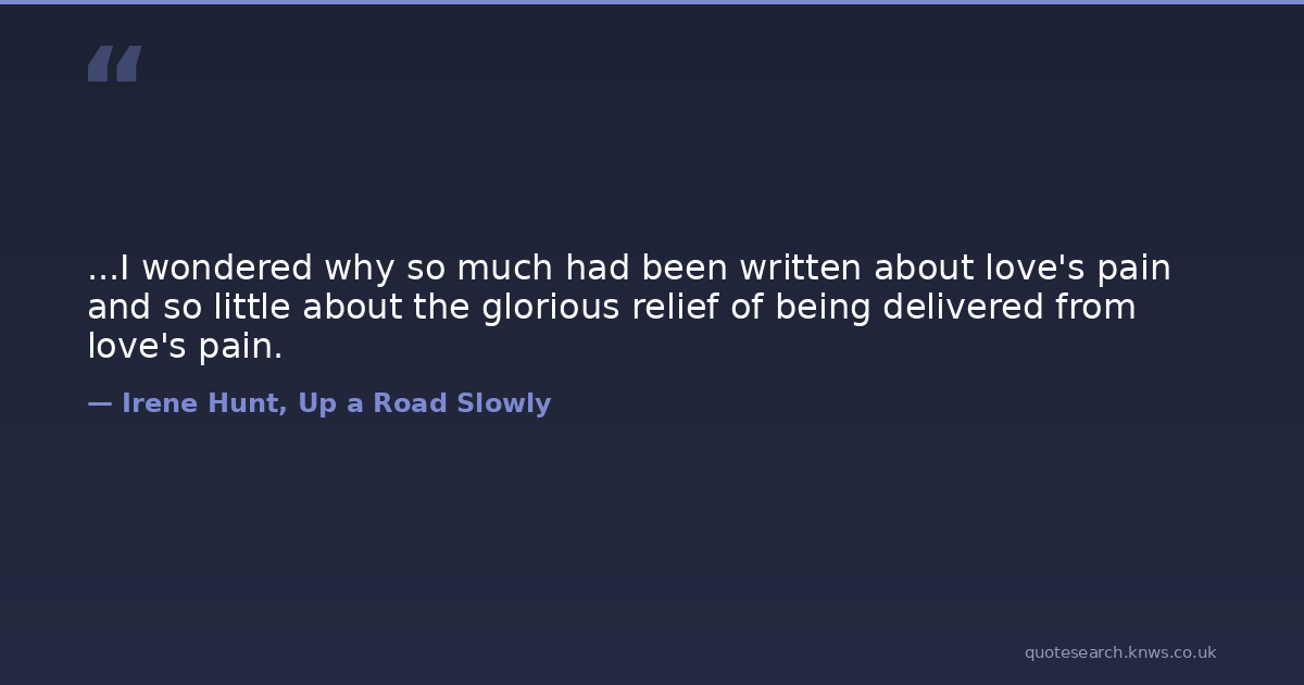 ...I wondered why so much had been written about love's pain and so little about the glorious relief of being delivered from love's pain.