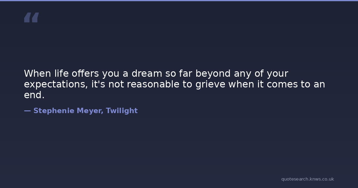 When life offers you a dream so far beyond any of your expectations, it's not reasonable to grieve when it comes to an end.