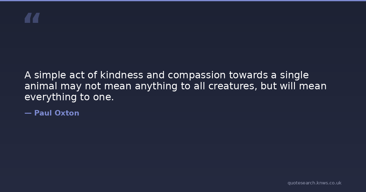 A simple act of kindness and compassion towards a single animal may not mean anything to all creatures, but will mean everything to one.