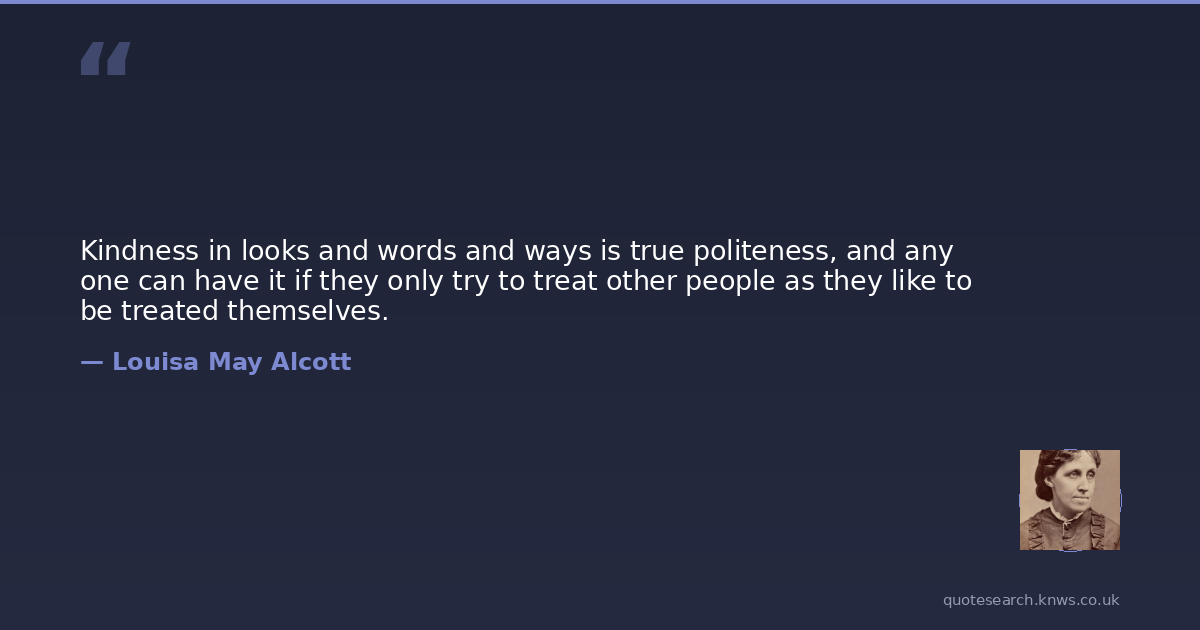 Kindness in looks and words and ways is true politeness, and any one can have it if they only try to treat other people as they like to be treated themselves.