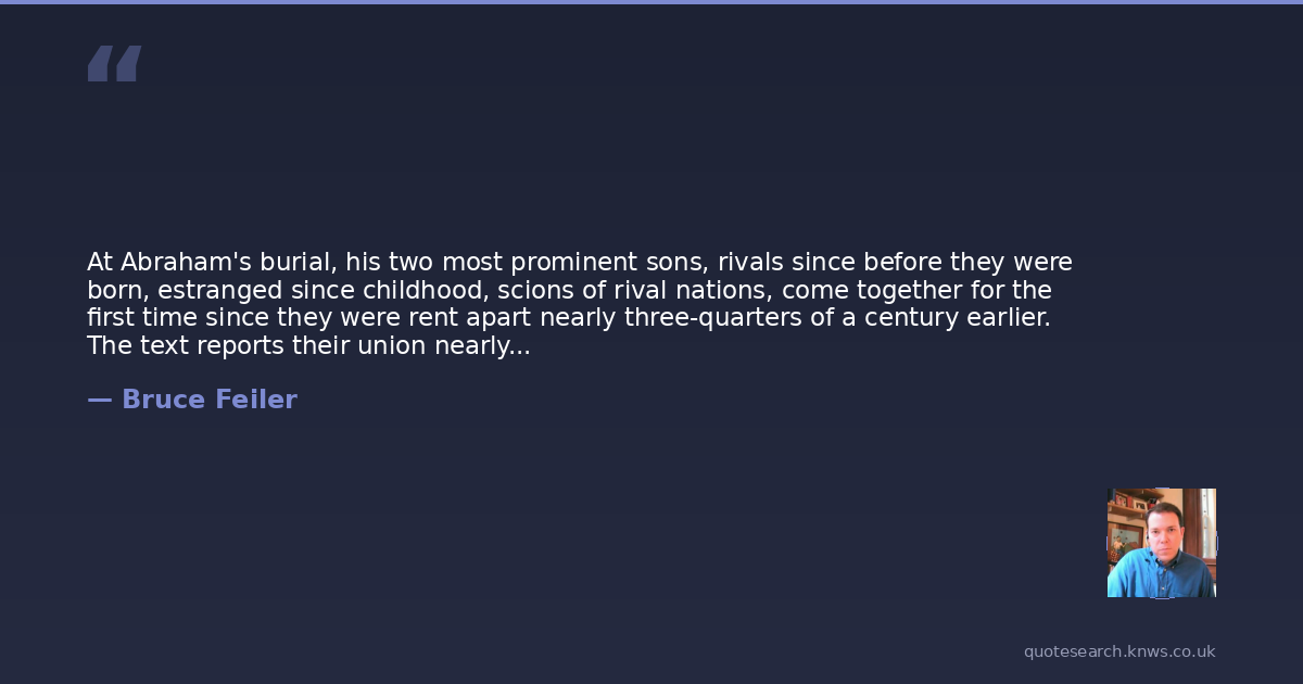 Bruce Feiler was American writer and television personality. Bruce Feiler is an American writer and television personality. He is the author of 15 books, including The Council of Dads, a book that describes how he responded to a diagnosis of a rare cancer by asking a group of men to be present in the lives of his young daughters. Read more on Wikipedia →