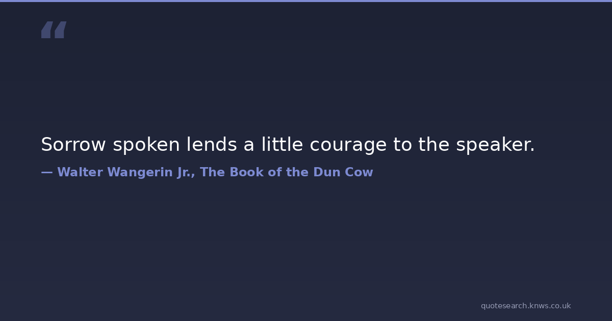 Sorrow spoken lends a little courage to the speaker. conversation grief Download Image Share on X Share on Facebook Copy Link