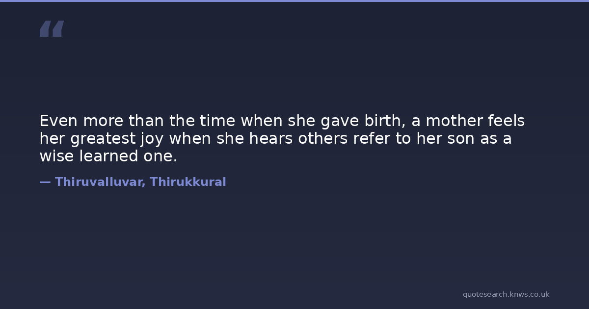 Even more than the time when she gave birth, a mother feels her greatest joy when she hears others refer to her son as a wise learned one.