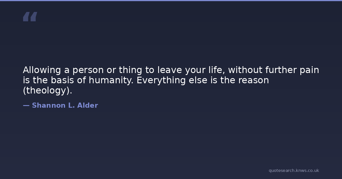 Allowing a person or thing to leave your life, without further pain is the basis of humanity. Everything else is the reason (theology).