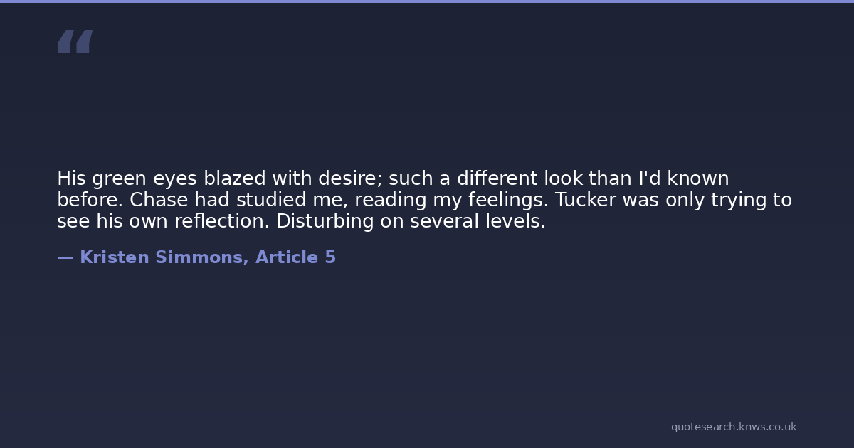 His green eyes blazed with desire; such a different look than I'd known before. Chase had studied me, reading my feelings. Tucker was only trying to see his own reflection. Disturbing on several levels.