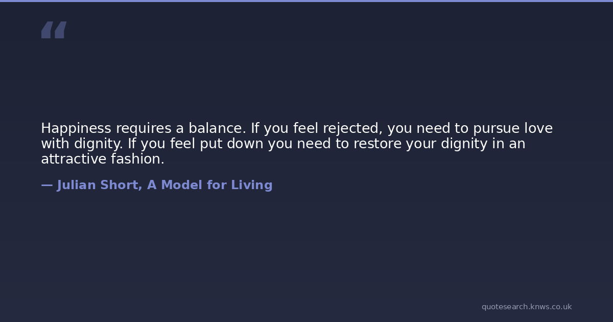 Happiness requires a balance. If you feel rejected, you need to pursue love with dignity. If you feel put down you need to restore your dignity in an attractive fashion.