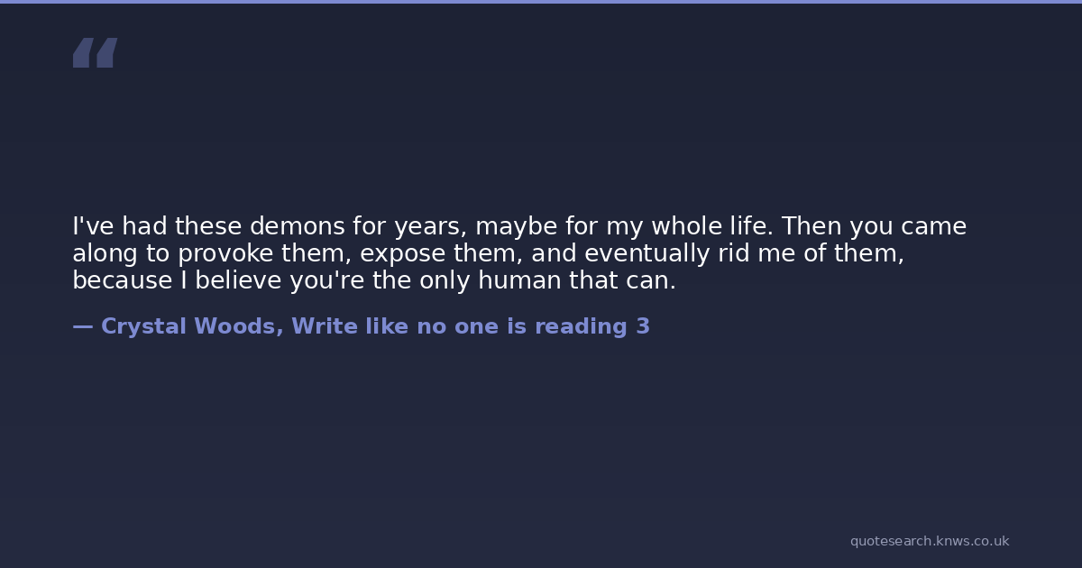 I've had these demons for years, maybe for my whole life. Then you came along to provoke them, expose them, and eventually rid me of them, because I believe you're the only human that can.